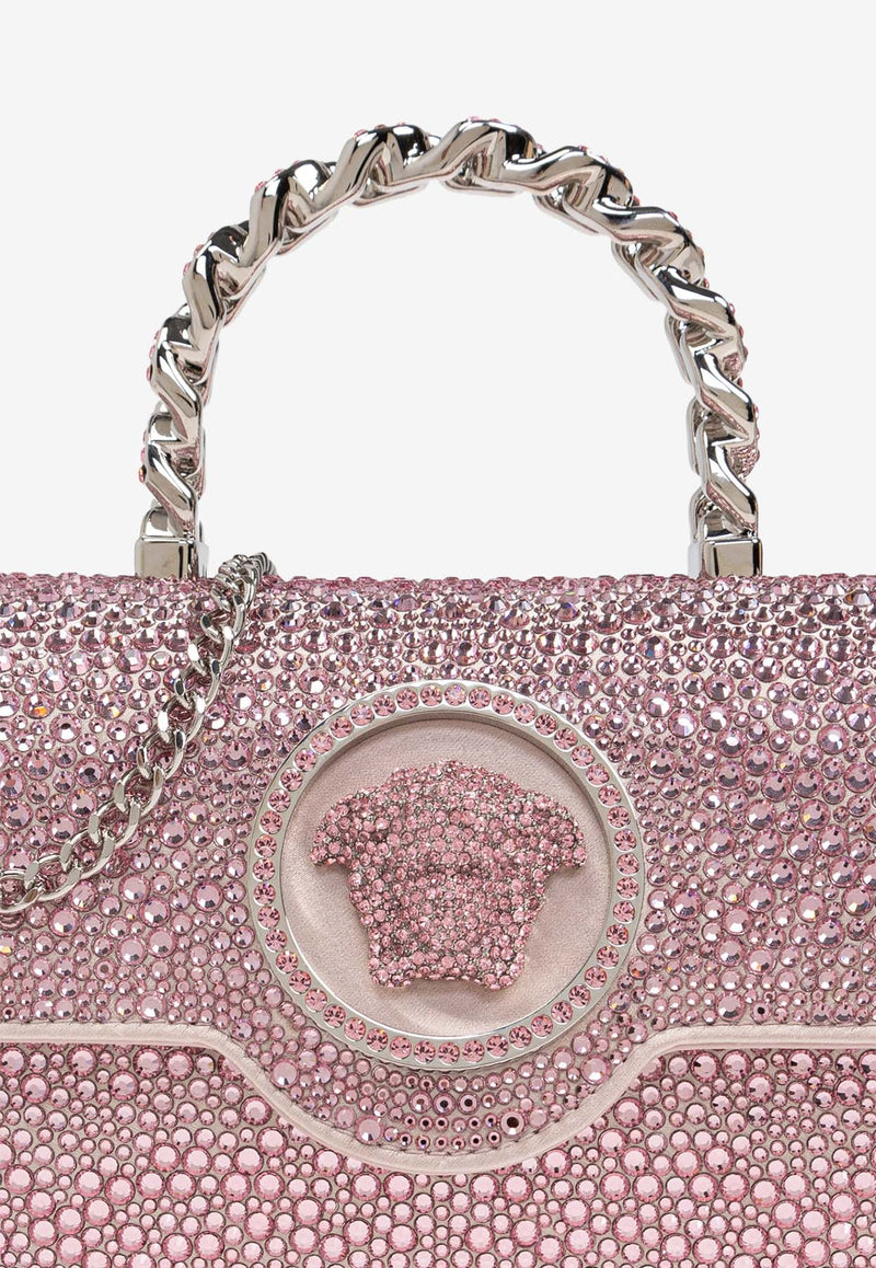 - La Medusa crystal hardware on the front